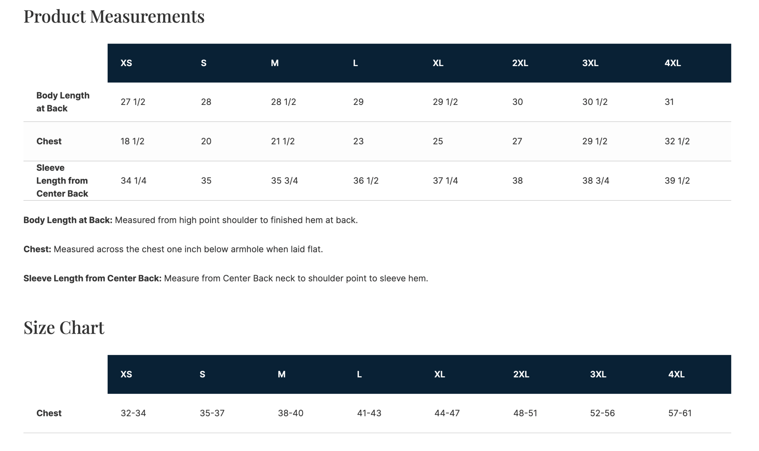 | Size | XS, S, M, L, XL, 2XL, 3XL, 4XL |